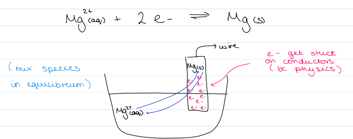 draw an electrode for Mg2+(aq) + 2e- –> Mg(s)