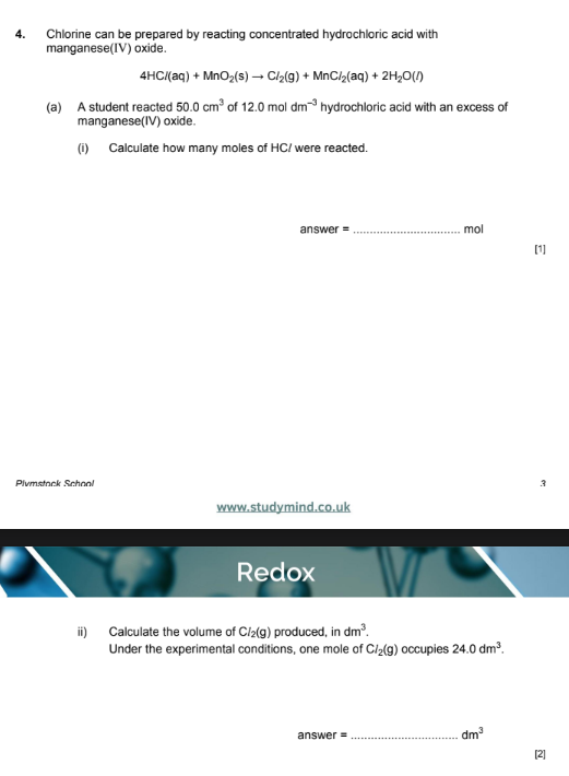 (ii) 4 mol HCl → 1 mol Cl2