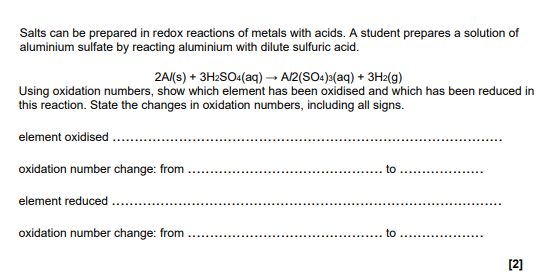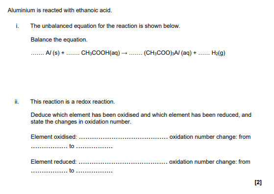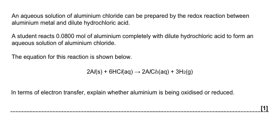 oxidised: aluminium/Al 0 to +3 ✓
