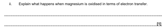 (Mg) transfers/loses/donates 2 electrons ✓