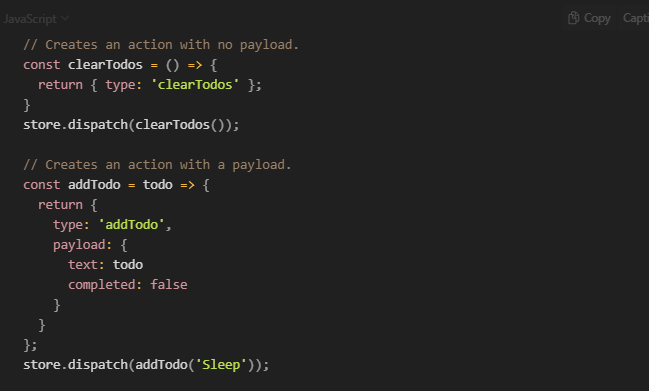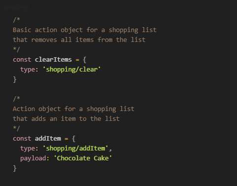 In Redux, an action is a plain JavaScript object that represents an intention to change the store’s state. Action objects must have a type property with a user-defined string value that describes the action being taken.