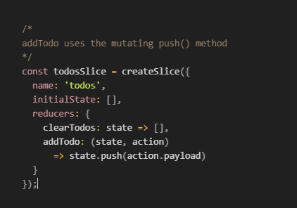 “Mutable” Code with createSlice()