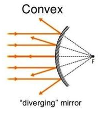 convex mirrors cause parallel incident light rays to: