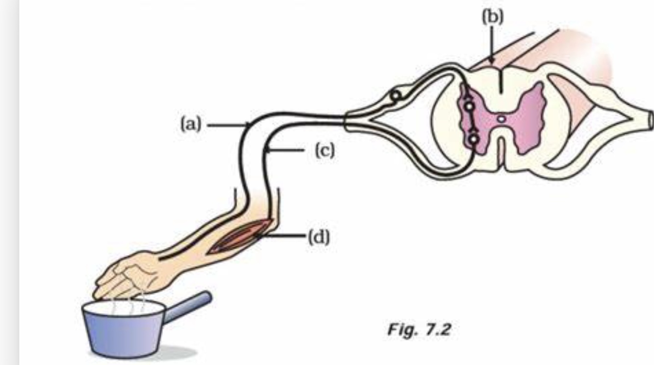 Immediate - only 3 neurones involved. Minimum number of synapses