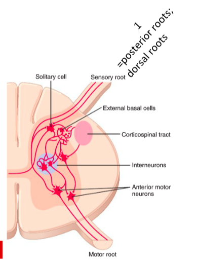 What are the spinal cord segment types (in addition to sensory neurons)?
