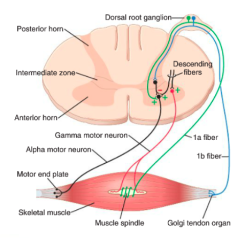 Describe the role of muscle spindles and golgi tendon organs in muscle control.