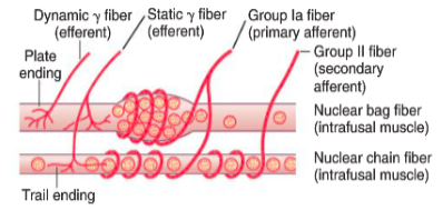 Describe the control of intensity of static and dynamic responses by the gamma motor neurons.