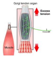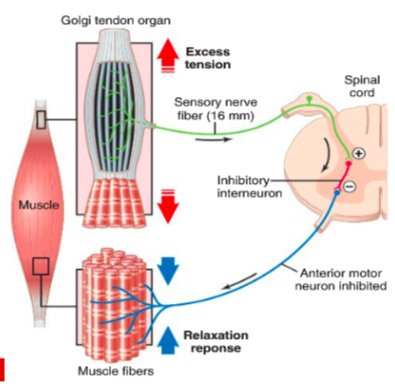 Describe the golgi tendon reflex and prevention of excessive tension.