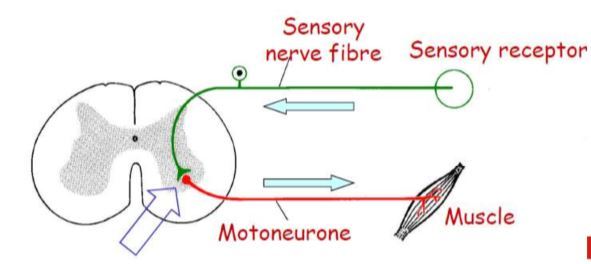 Sensory receptor, sensory nerve fibre, motoneuron and muscle