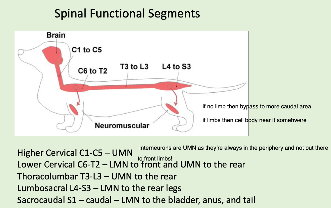 Thoracolumbar T3-L3 – UMN to the rear