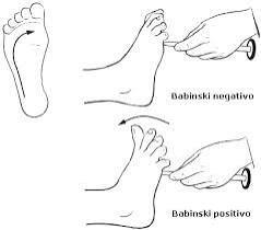 Um reflexo que ocorre quando o dedo grande do pé se movimenta em direção à parte superior do pé e os outros dedos do pé abrem para fora após a planta do pé ter sido pousada com firmeza.