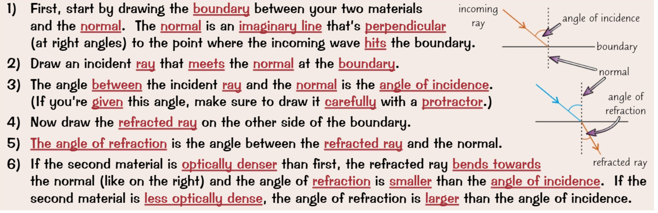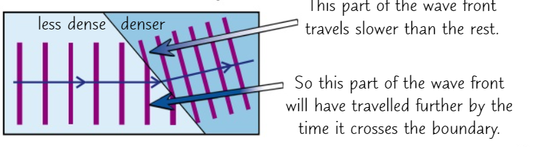 Refraction is the change in direction of a wave passing from one medium to another caused by its change in speed.
