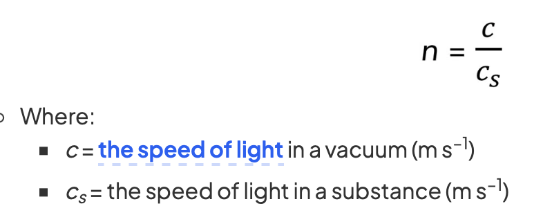 What do the components of the refractive index equation mean