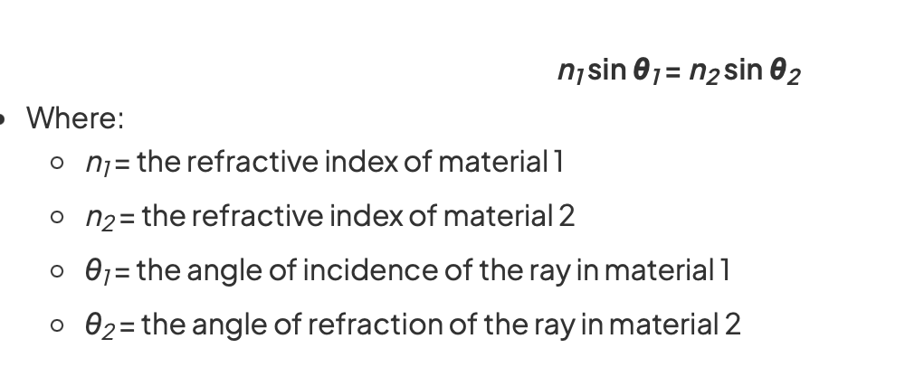 What do the components of snell’s law equation mean