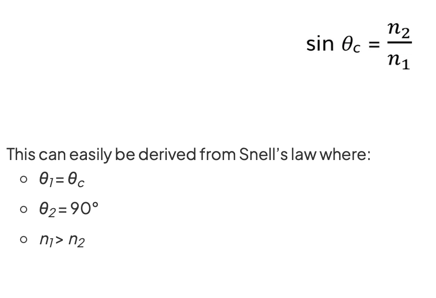 What do the components of the critical angle equation mean