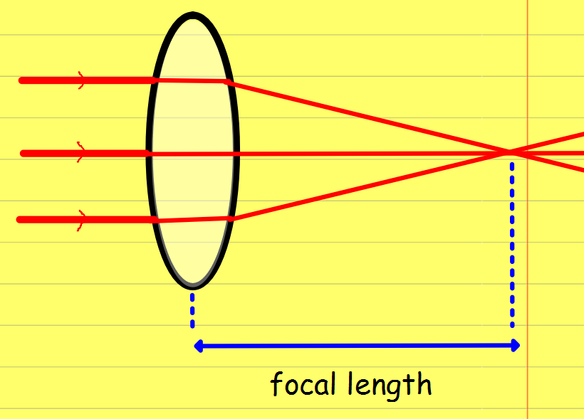 Draw a diagram to show parallel rays of light travelling through a convex lens.