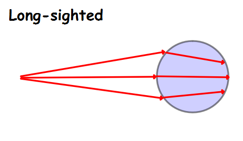 Draw a diagram to show rays of light in the eye of a person who is long-sighted.