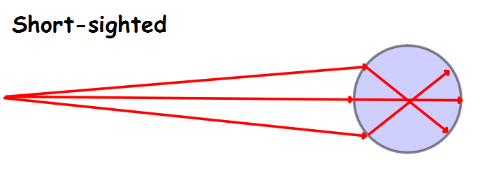 Draw a diagram to show rays of light in the eye of a person who is short-sighted.