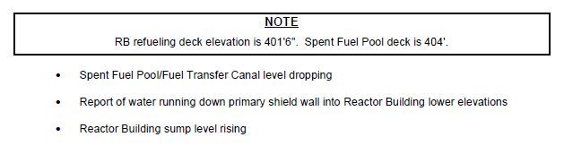 3) If fuel handling in progress and level dropping fast and unable to move to vessel, SRO evaluate placing assmebly in safest location.
