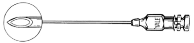 Quincke-Babcock (cutting spinal needle)