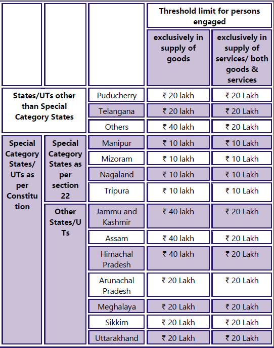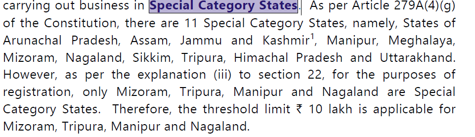 What is the applicability of threshold limits when it comes to registration, how does it differ when it comes to special category state? is there some special category states to which the regular threshold shall still apply?