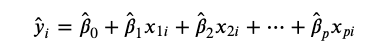 Making predictions from a model is when we take an observation’s x values and plug those values into their corresponding slots in the equation below (EG X1 will go with B1, X2 with B2, etc.). Once everything to the right of the equals sign is a number, add and multiply those as they’re written to get the predicted value.