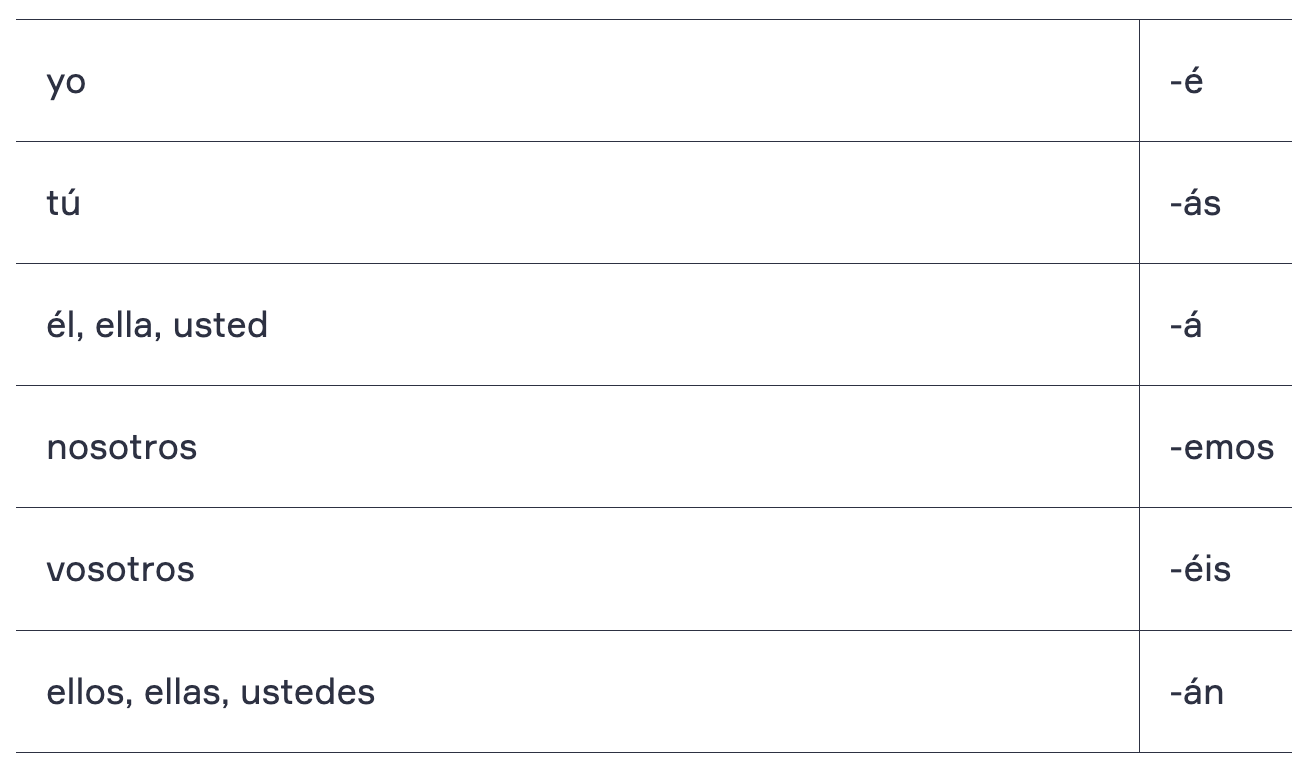 It refers to a future that is less specifically planned. Ending is the same for all AR, IR, and ER verbs.