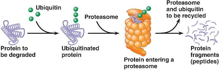 “giant protein complexes that bind to protein molecules and degrade them” (Cliffs 139).