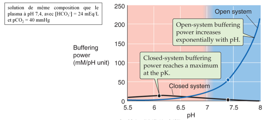 Comparez le pouvoir tampon CO2/HCO3- en système ouvert ou en système fermé.