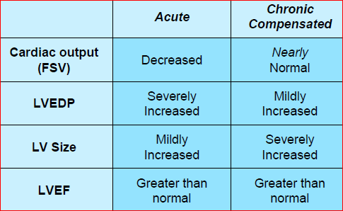 Compensatory mechanisms in acute MR