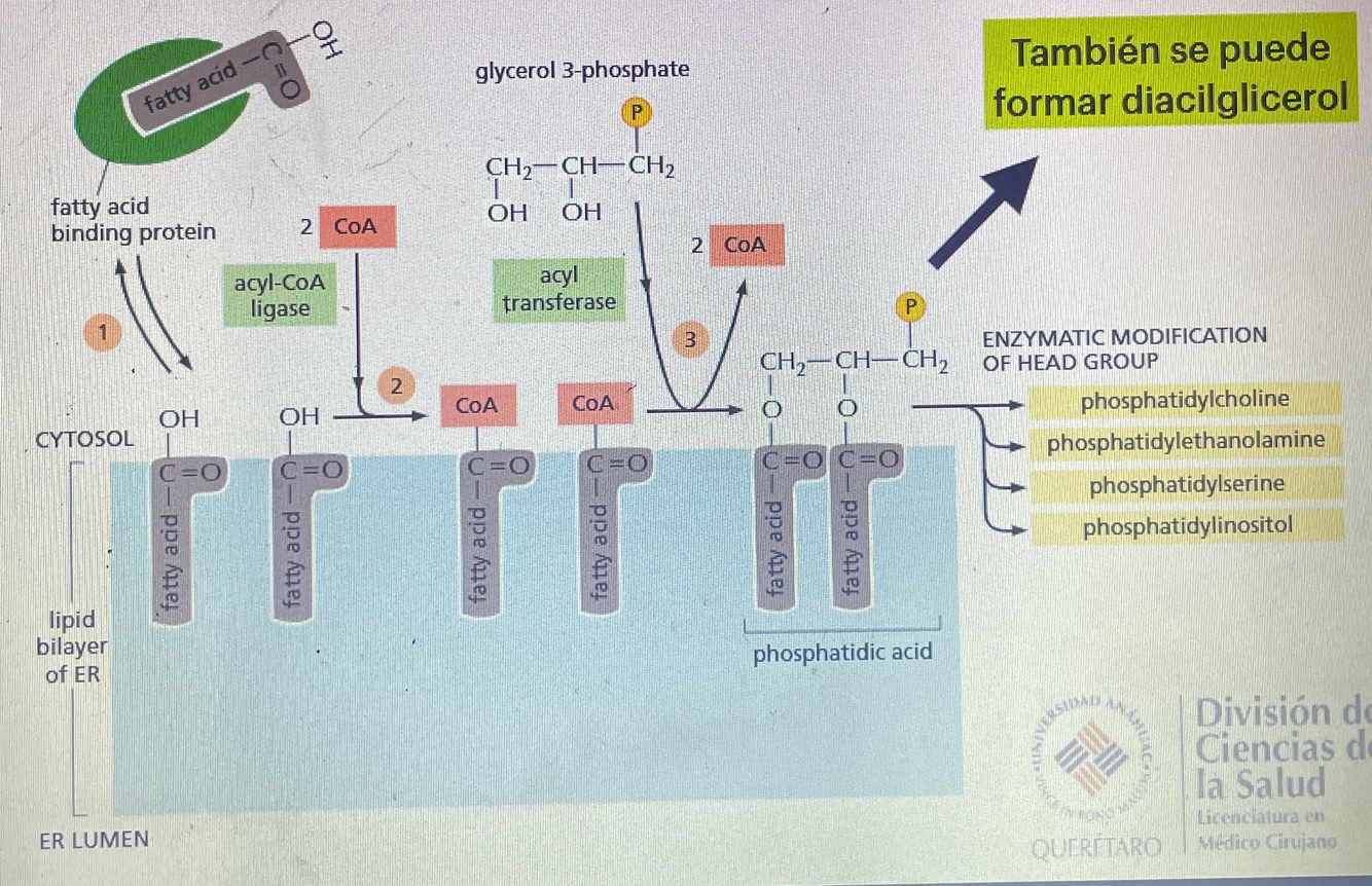 Pasos de la síntesis de fosfolípidos