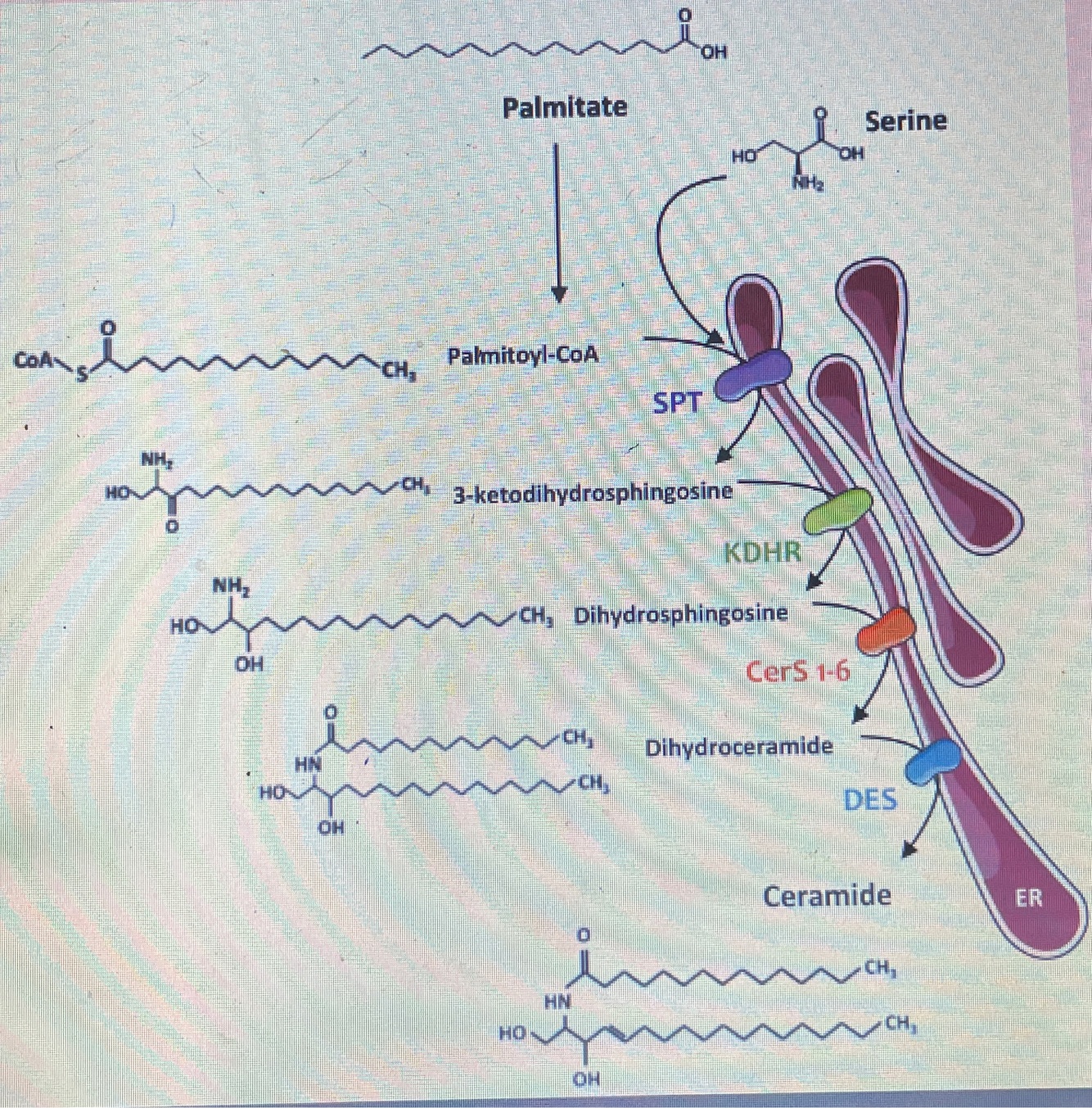 Pasos de la síntesis de esfingolípidos