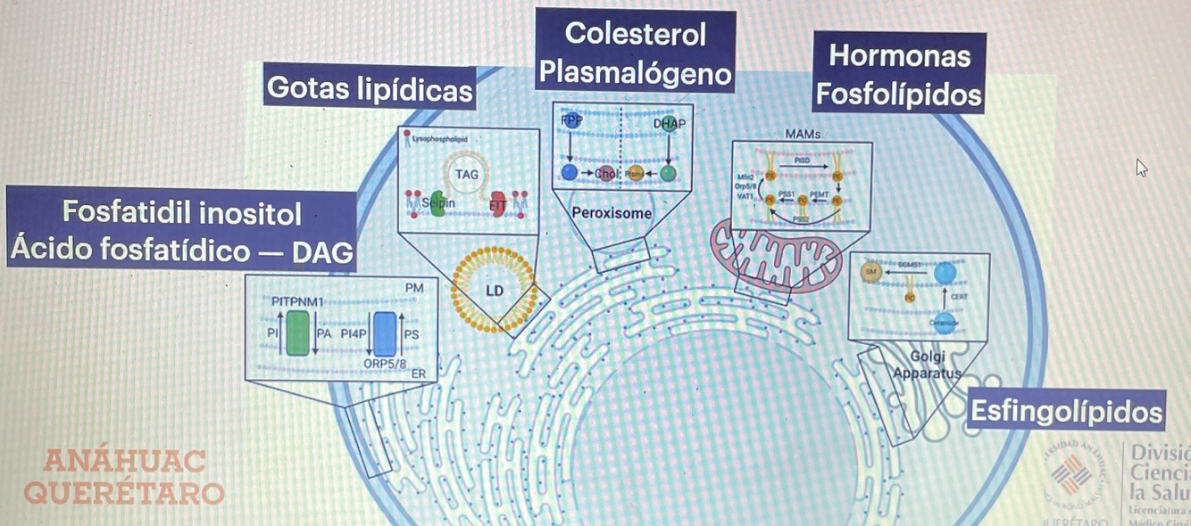 Síntesis de lípidos: (interacción con otros organelos)