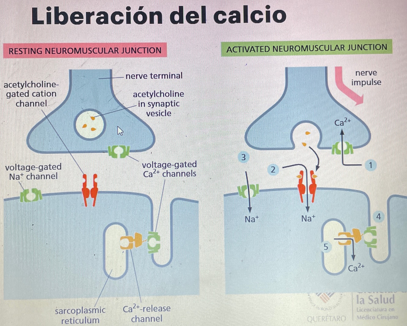 Liberación de calcio en la unión neuromuscular: PASOS