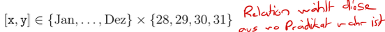 Teilmenge vom kartesischem Produkt aus x und y, wo das Prädikat wahr ist.