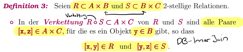 Relationen sind in der Informatik zentral, da Sie Verbindungen zwischen … beschreiben.
