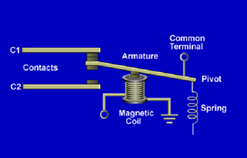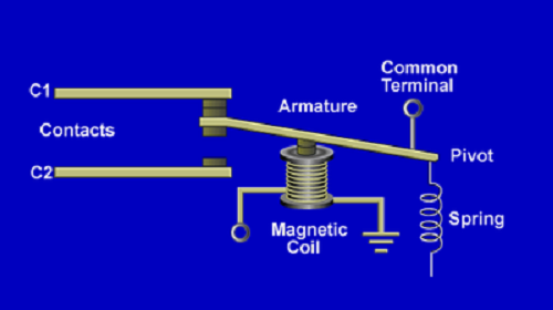 In general, a relay consists of a magnetic coil, contacts, armature, and spring.