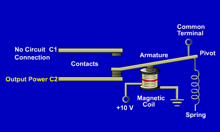 If the relay is used as a power relay, C2 contact is connected to the circuit or equipment. The relay acts as a SPST closed switch.