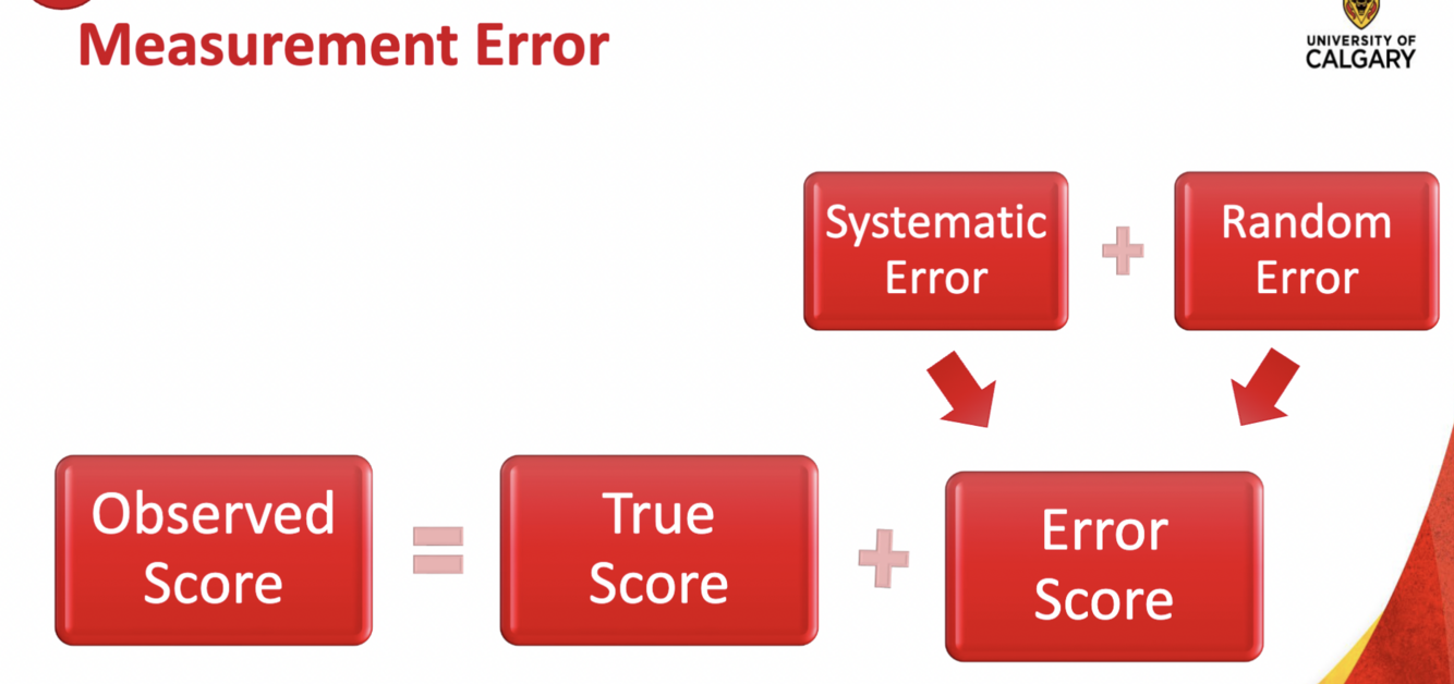 * Measured score = true score + measurement error