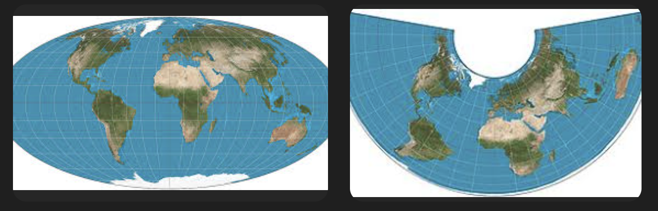 These projections resemble cylindrical projections but employ curved lines instead of straight lines for meridians and parallels. The Sinusoidal, Mollweide, and Goode Homolosine projections are popular examples.