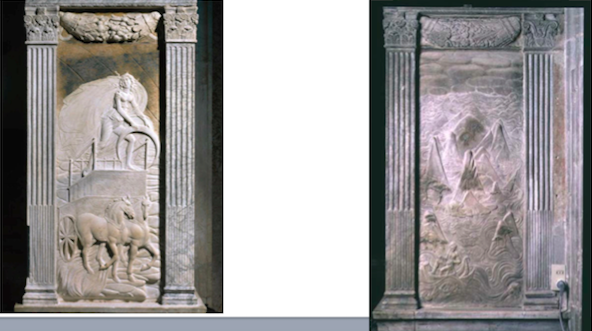Agostino di Duccio, Signs of the Zodiac: Aquarius; Diana, Rimini, 1450s