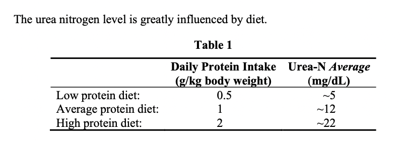 The urea nitrogen level is greatly influenced by diet
