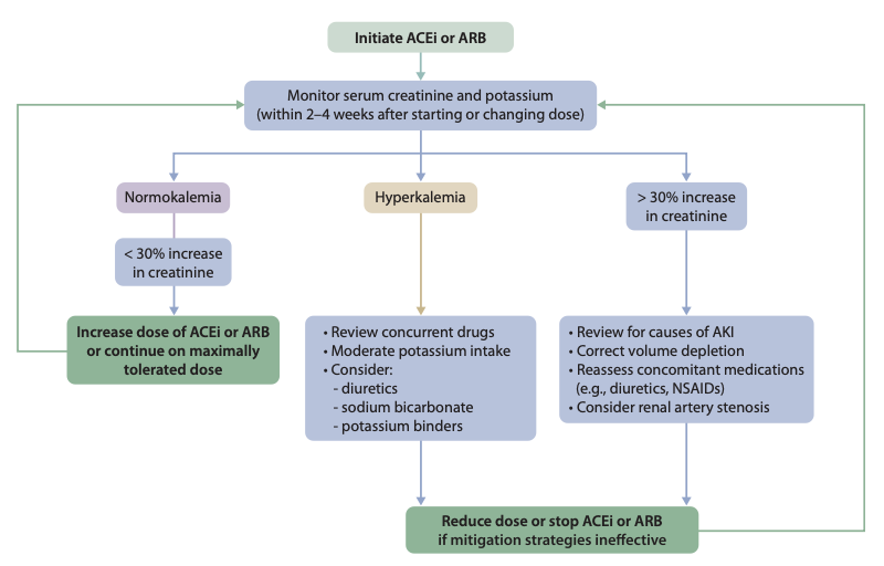 Creatinine therefore begins to rise in a few days after ACEi / ARB is started because levels of ATII are rapidly reduced