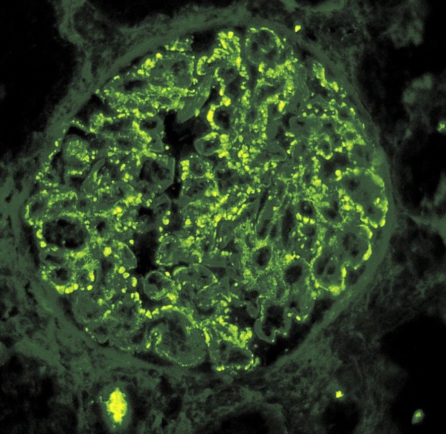 Goodpastures Syndrome w/ intra-alveolar hemorrhage