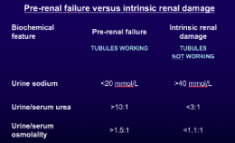 how to differentiate between pre-renal failure and intrinsic renal damage