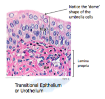 * membranous (from prostate to bulb of penis) - transitional changes to straified columnar