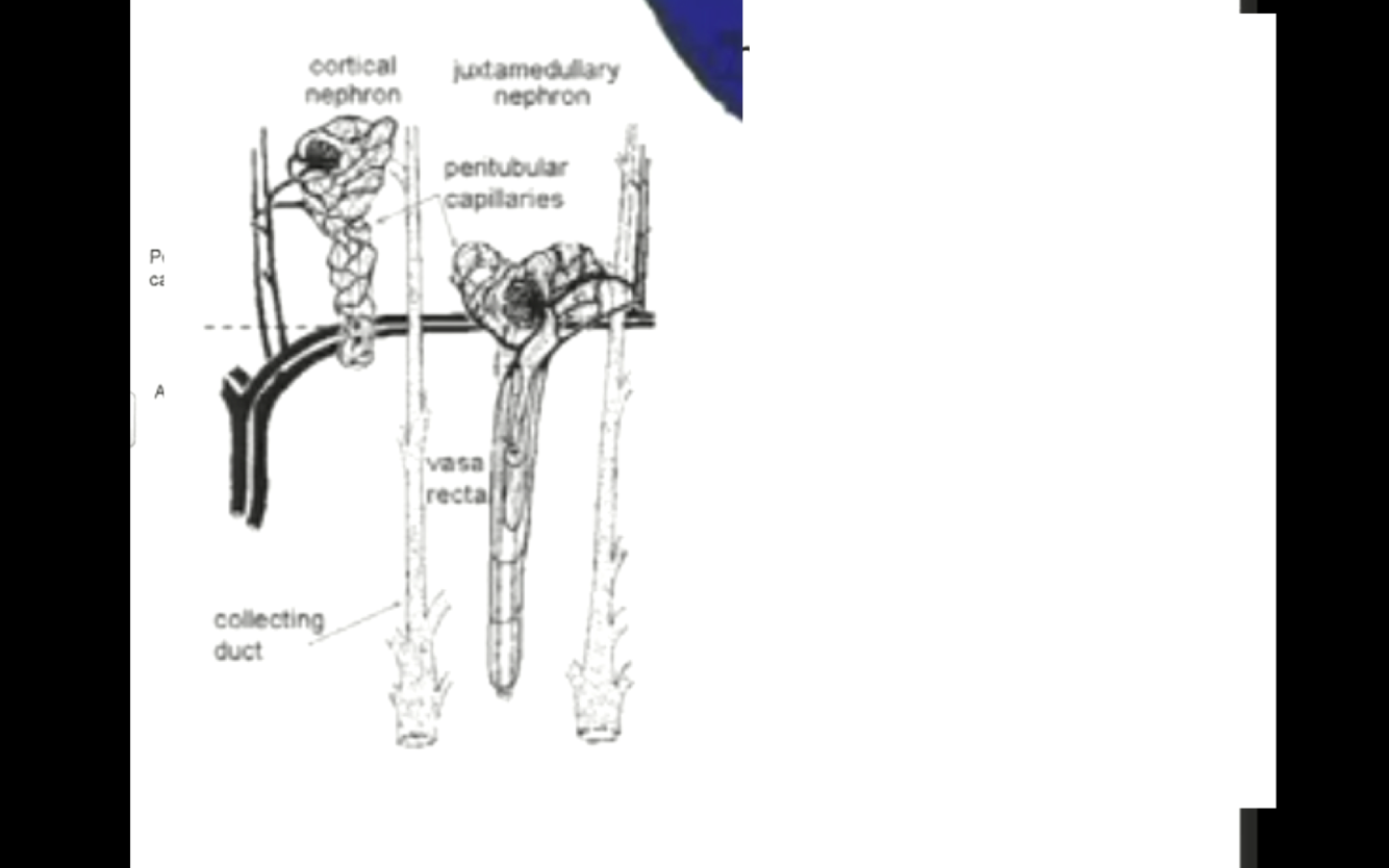TF in juxtaglomerular nephron the glomeruli are bigger and loop of henle are longer than cortical nephron