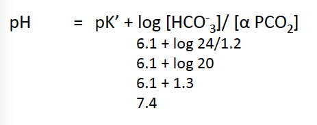 the pH of the system depends on the ratio of molar conc. bicarbonate to pressure carbon dioxide
