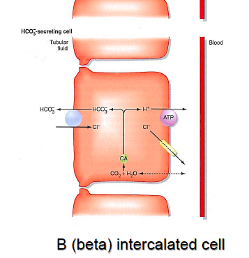describe how HCO3 is secreted by beta intercalated cells of collecting duct