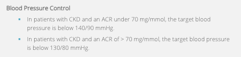 What are the specific NICE guidelines for blood pressure levels in CKD patients? [2]
